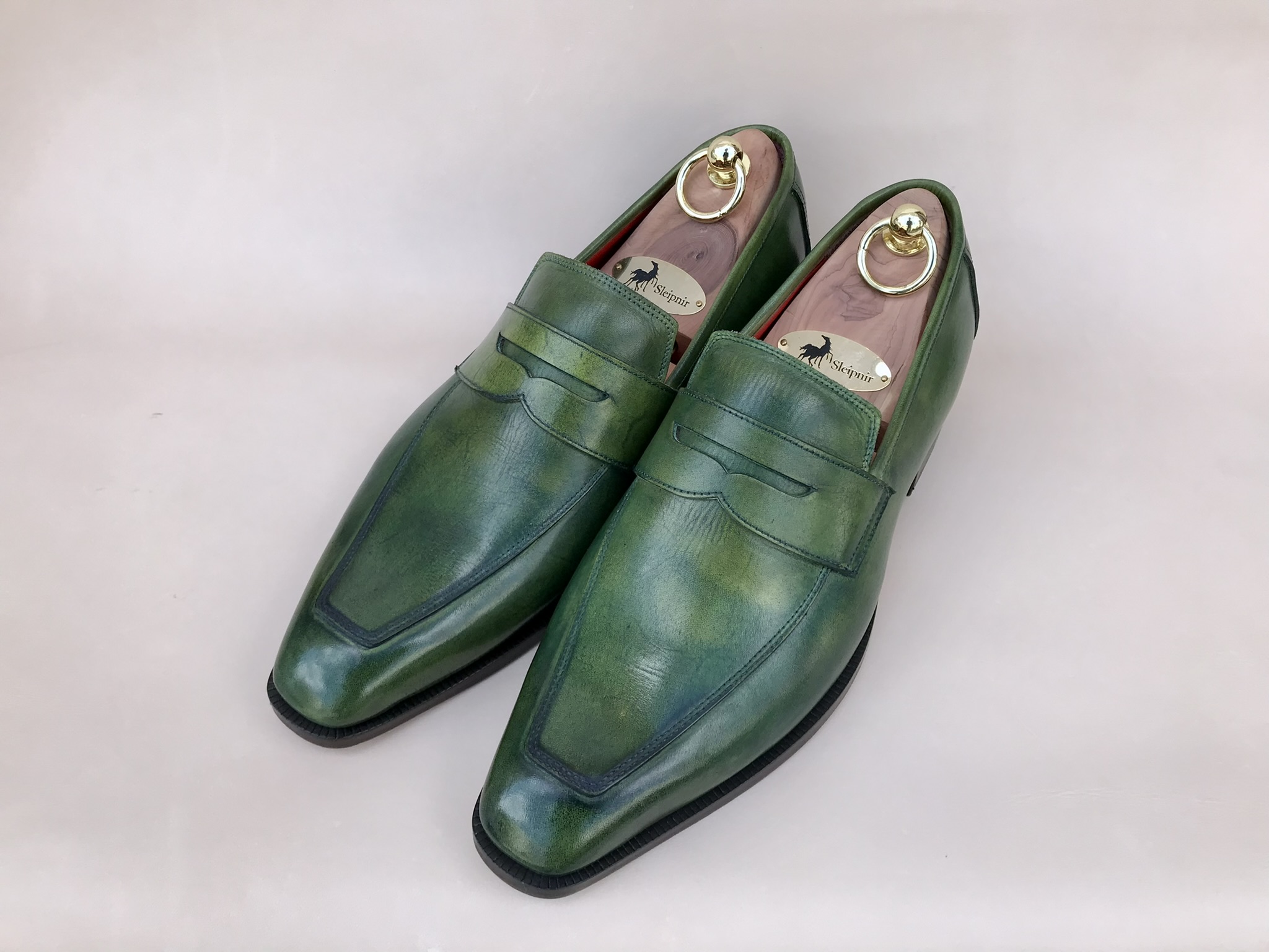 ダークグリーン系のセクシーなローファー